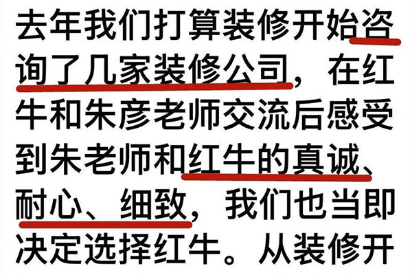 客戶見證|聽聽過來人對南京紅牛裝飾公司的真實評價
